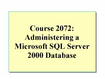 <Notice: Removed> Course 2072: Administering a Microsoft SQL Server 2000 Database PowerPoint PPT Presentation