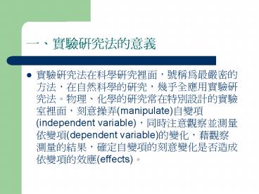 ????????????,?????????,????????,???????????????????????????????,????(manipulate)???(independent variable),????????????(dependent variable)???,????????,????????????????????(effects)? PowerPoint PPT Presentation