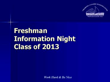 <Notice: Removed> Freshman Information Night Class of 2013 PowerPoint PPT Presentation