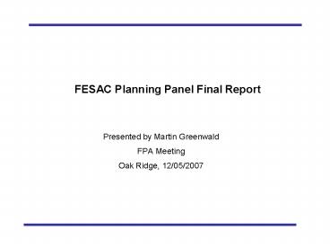Title: FESAC Planning Panel Final Report