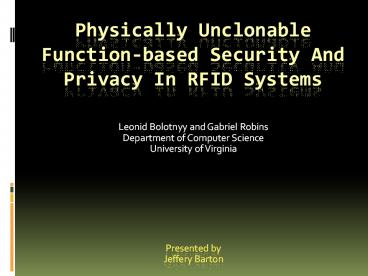 <Notice: Removed> Physically Unclonable Function-based Security And Privacy In RFID Systems PowerPoint PPT Presentation