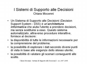 <Notice: Removed> I Sistemi di Supporto alle Decisioni Chiara Mocenni PowerPoint PPT Presentation