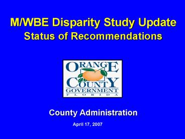 <Notice: Removed> M/WBE Disparity Study Update Status of Recommendations PowerPoint PPT Presentation