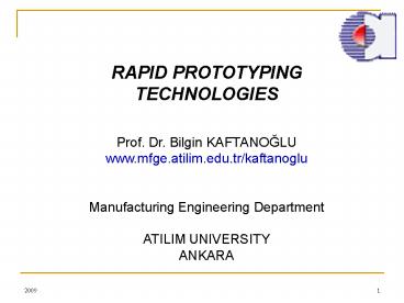 1 RAPID PROTOTYPING TECHNOLOGIES Prof. Dr.