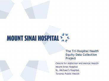 The Tri-Hospital Health Equity Data Collection Project Centre for Addiction and Mental Health Mount Sinai Hospital St. Michael s Hospital Toronto Public Health – PowerPoint PPT presentation