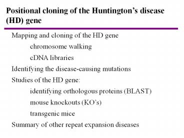 (chorea), cognitive decline, death - Symptoms result from neurodegeneration
