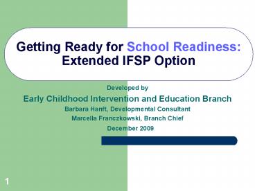 Title: Getting Ready for School Readiness: Extended IFSP Option