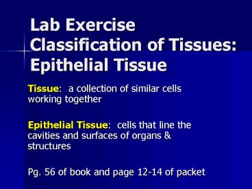Title: Lab Exercise Classification of Tissues: Epithelial Tissue
