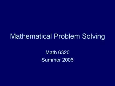 <Notice: Removed> Mathematical Problem Solving PowerPoint PPT Presentation