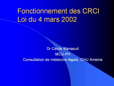 <Notice: Removed> Fonctionnement des CRCI Loi du 4 mars 2002 PowerPoint PPT Presentation