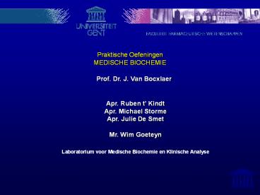 1 Praktische Oefeningen MEDISCHE BIOCHEMIE