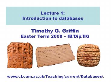 <Notice: Removed> Lecture 1: Introduction to databases PowerPoint PPT Presentation