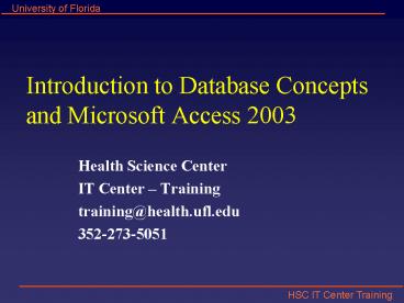 <Notice: Removed> Introduction to Database Concepts and Microsoft Access 2003 PowerPoint PPT Presentation