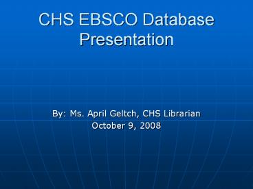 <Notice: Removed> CHS EBSCO Database Presentation PowerPoint PPT Presentation