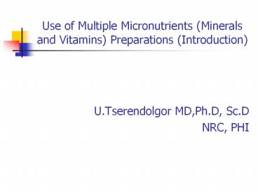 Title: Use of Multiple Micronutrients (Minerals and Vitamins) Preparations (Introduction)