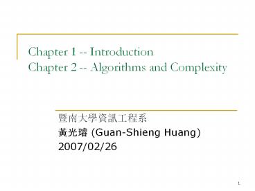 <Notice: Removed> Chapter 1-- Introduction Chapter 2-- Algorithms and Complexity PowerPoint PPT Presentation