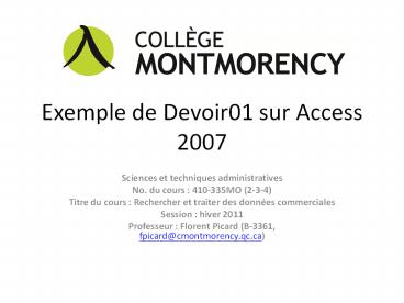 <Notice: Removed> Exemple de Devoir01 sur Access 2007 PowerPoint PPT Presentation