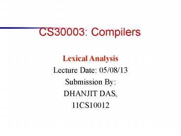 Lexical Analysis Lecture Date 05/08/13 Submission