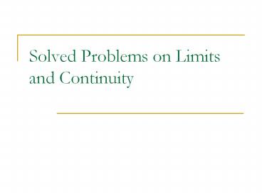 Solved Problems on Limits and Continuity PowerPoint PPT Presentation