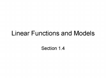 <Notice: Removed> Linear Functions and Models PowerPoint PPT Presentation