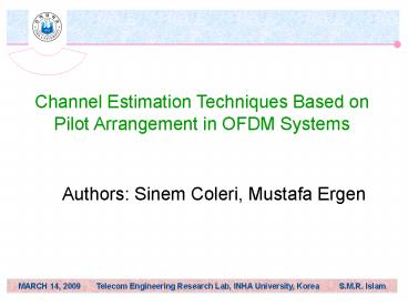 <Notice: Removed> Channel Estimation Techniques Based on Pilot Arrangement in OFDM Systems PowerPoint PPT Presentation