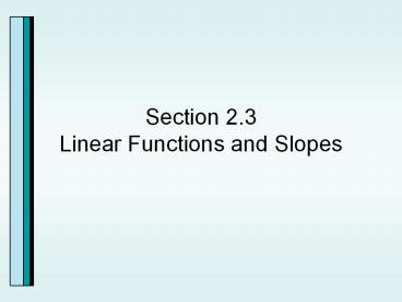 <Notice: Removed> Section 2.3 Linear Functions and Slopes PowerPoint PPT Presentation