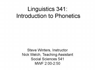 Linguistics 341: Introduction to Phonetics PowerPoint PPT Presentation