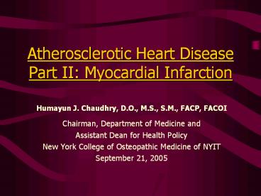 <Notice: Removed> Atherosclerotic Heart Disease Part II: Myocardial Infarction PowerPoint PPT Presentation