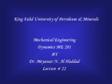 Mechanical Engineering Dynamics ME 201 BY Dr.