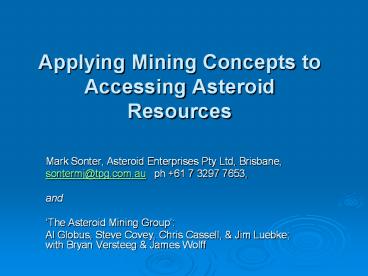 <Notice: Removed> Applying Mining Concepts to Accessing Asteroid Resources PowerPoint PPT Presentation