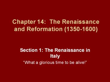 Title: Chapter 14: The Renaissance and Reformation (1350-1600)