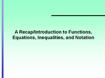 <Notice: Removed> A Recap/Introduction to Functions, Equations, Inequalities, and Notation PowerPoint PPT Presentation