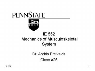 IE 552 Mechanics of Musculoskeletal System Dr.