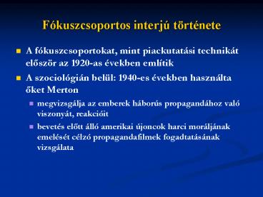 1Fókuszcsoportos interjú története
