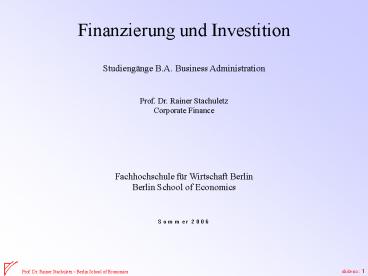 1Finanzierung und Investition Studiengänge B.A.