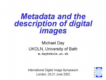 Metadata and the description of digital images PowerPoint PPT Presentation