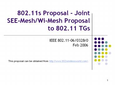 802.11s Proposal - Joint SEE-Mesh/Wi-Mesh Proposal to 802.11 TGs PowerPoint PPT Presentation