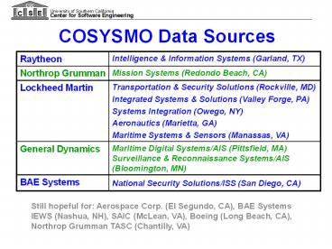 COSYSMO Data Sources PowerPoint PPT Presentation