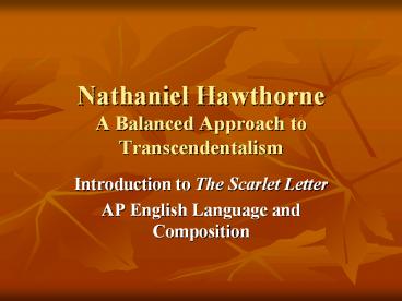 Title: Nathaniel Hawthorne A Balanced Approach to Transcendentalism