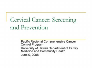 <Notice: Removed> Cervical Cancer: Screening and Prevention PowerPoint PPT Presentation