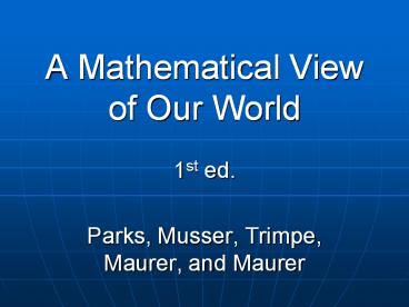 Title: A Mathematical View of Our World