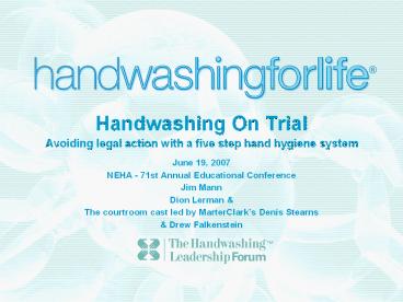 Title: Handwashing On Trial Avoiding legal action with a five step hand hygiene system