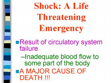 Shock: A Life Threatening Emergency PowerPoint PPT Presentation