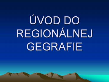 ÚVOD DO REGIONÁLNEJ GEGRAFIE