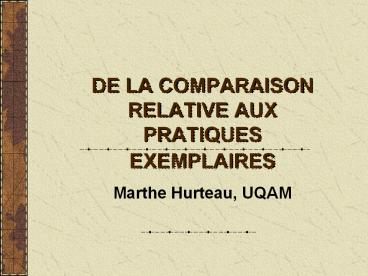 Title: DE LA COMPARAISON RELATIVE AUX PRATIQUES EXEMPLAIRES