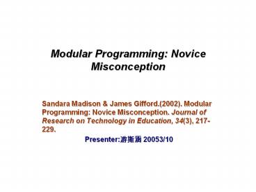 <Notice: Removed> Modular Programming: Novice Misconception PowerPoint PPT Presentation