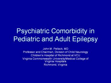 Title: Psychiatric Comorbidity in Pediatric and Adult Epilepsy