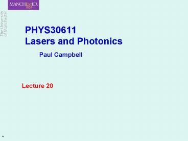 PHYS30611 Lasers and Photonics Paul Campbell PowerPoint PPT Presentation