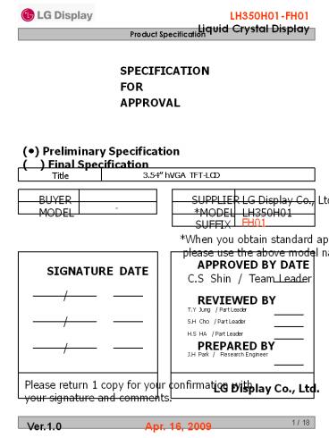 The LH350H01 is a Color Active Matrix Liquid
