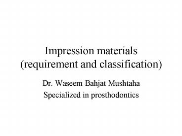 <Notice: Removed> Impression materials (requirement and classification) PowerPoint PPT Presentation